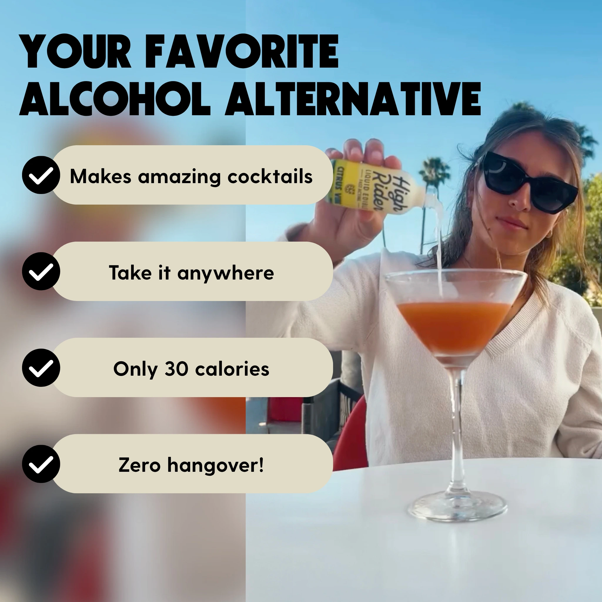 Mix it into your favorite cocktail, mocktail, or even just sparkling water. High Rider plays nice with other flavors and won't get weird when you get creative. Perfect for dinner parties where you want to sip something fancy while getting subtly elevated.