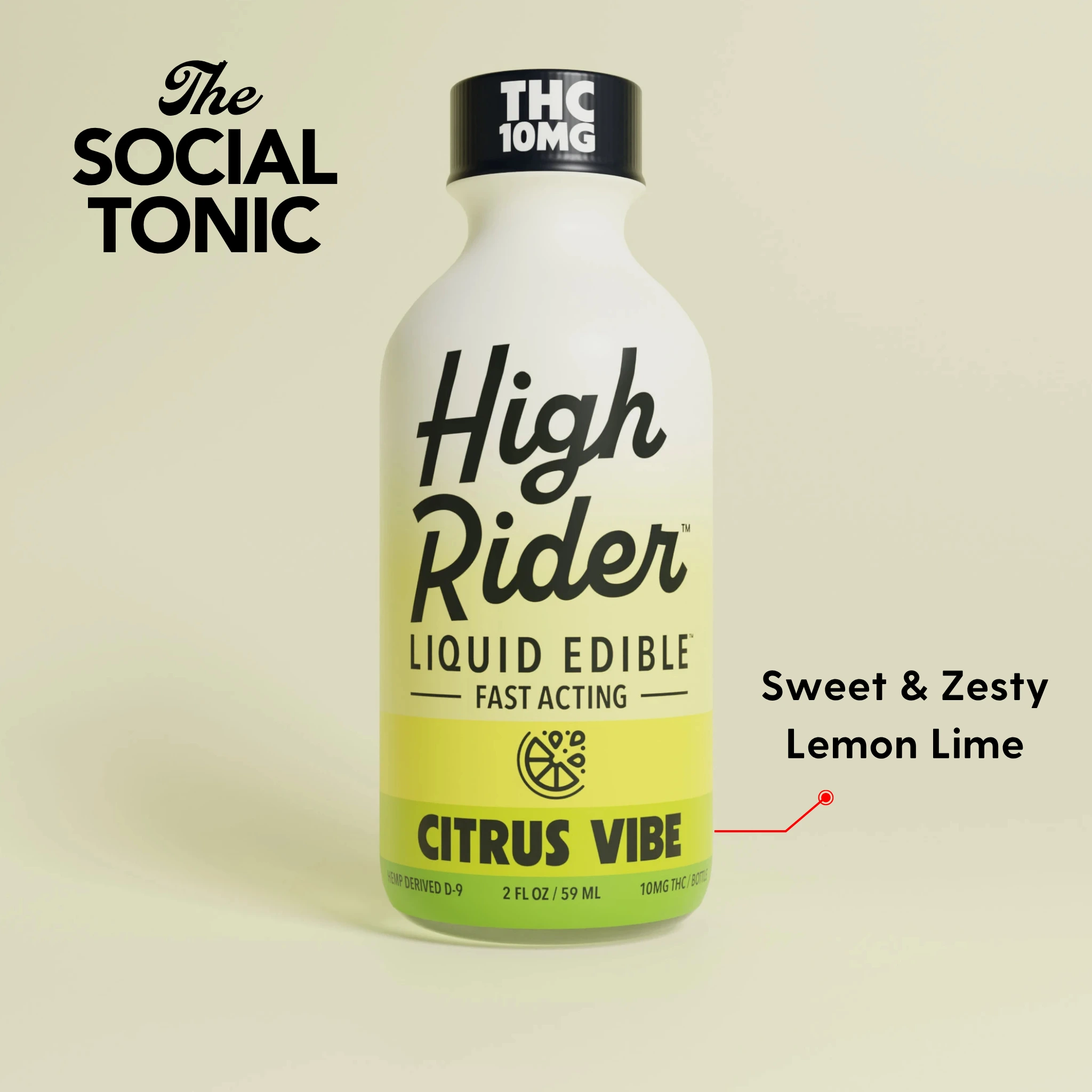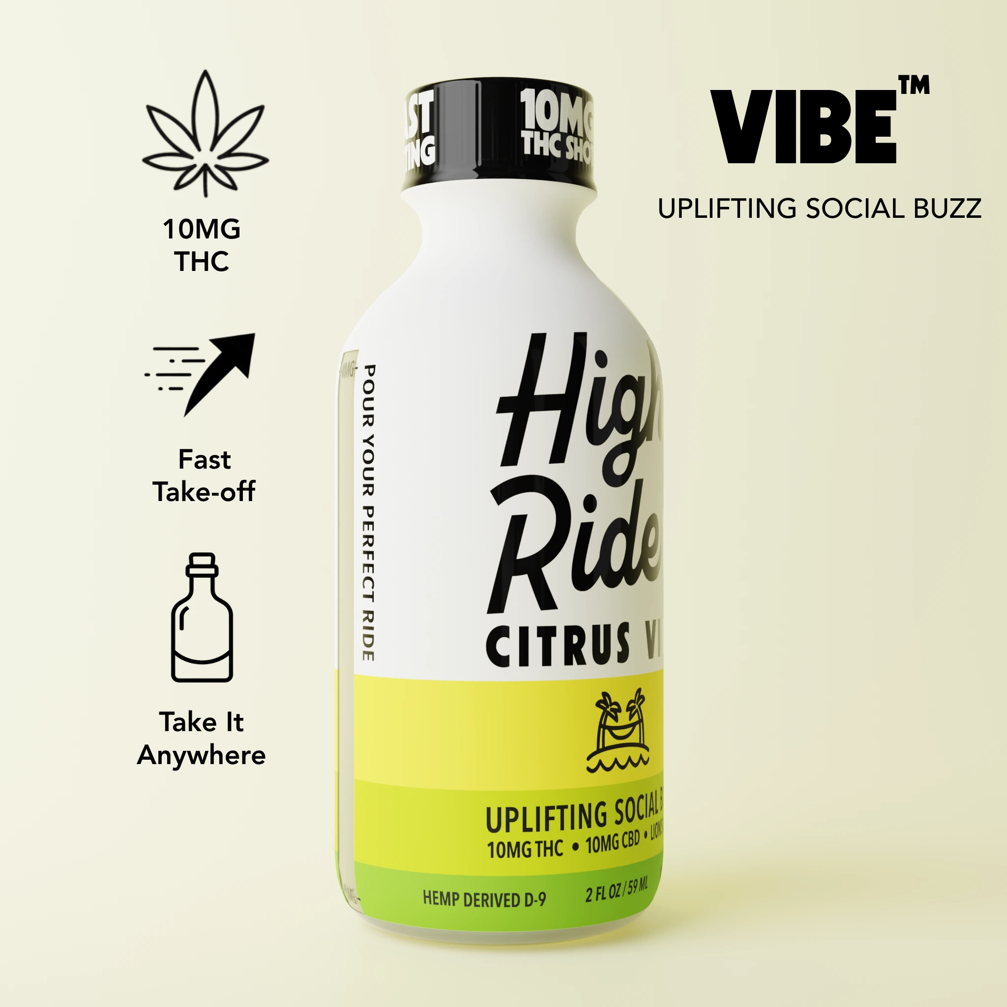 Find chill & clarity with High Rider Vibe, the fast-acting shot with 10MG THC that you can take anywhere. Shoot it straight or turn any drink into an infused adult beverage and awaken your senses to richer connections, deeper tunes, and a more vibrant reality.
